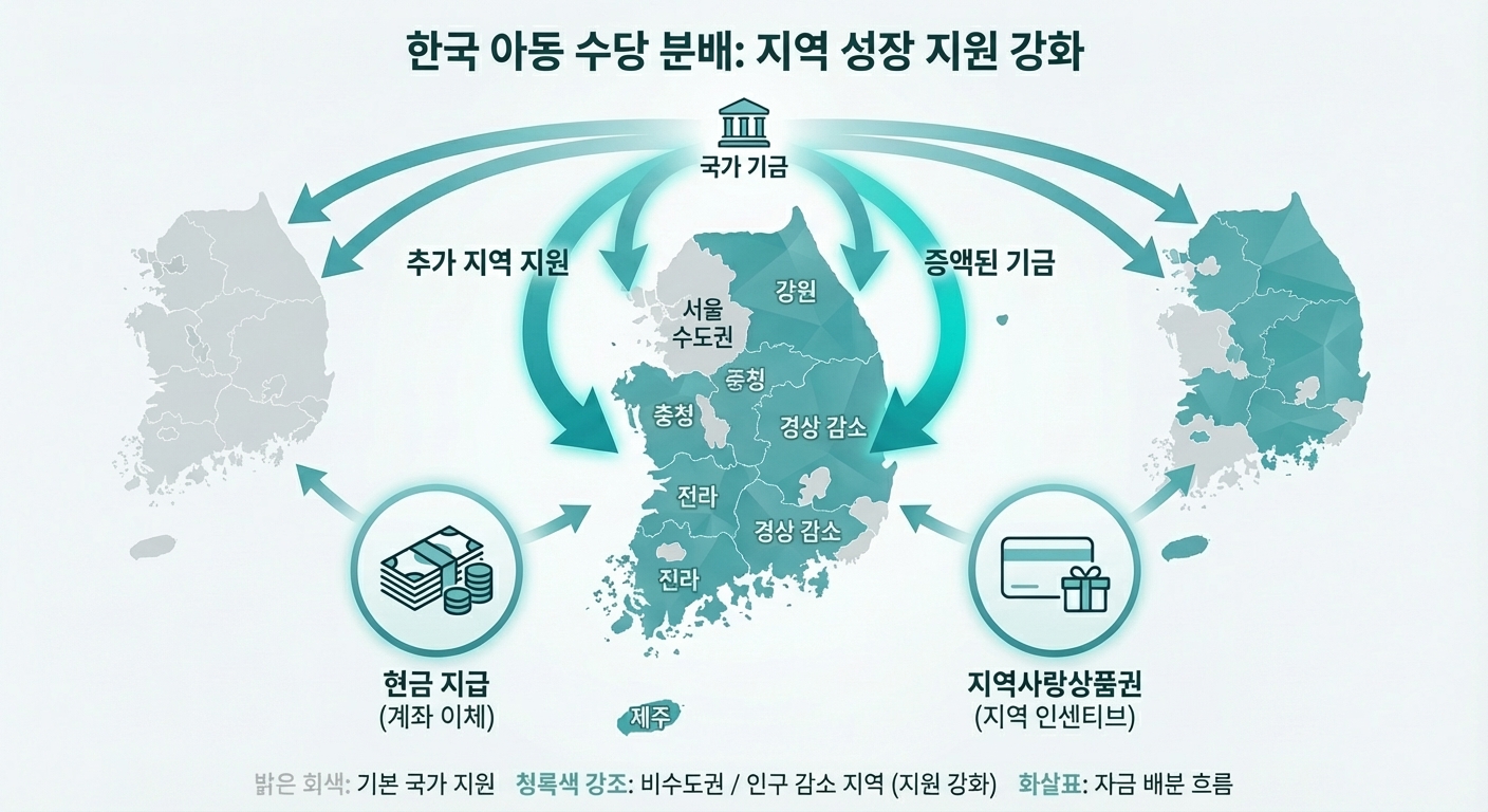 - 2. 비수도권 및 인구감소지역 아동에게는 추가 수당 지급이 논의 중입니다.