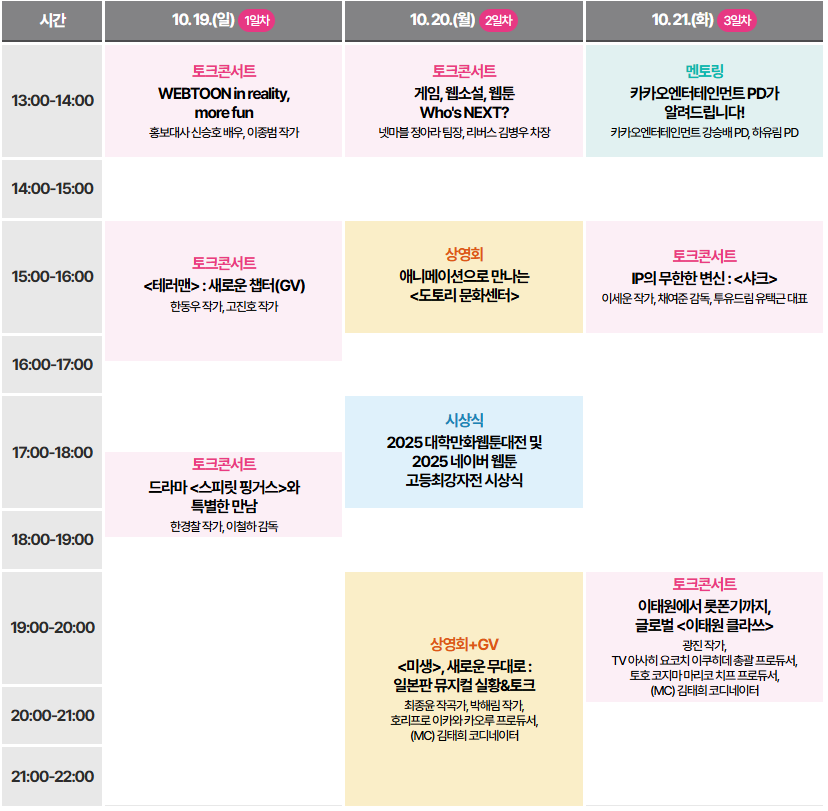 팝업 전시, 작가 무대 프로그램, 웹툰 체험 부스, 채용 박람회 등으로 구성되어 있죠.